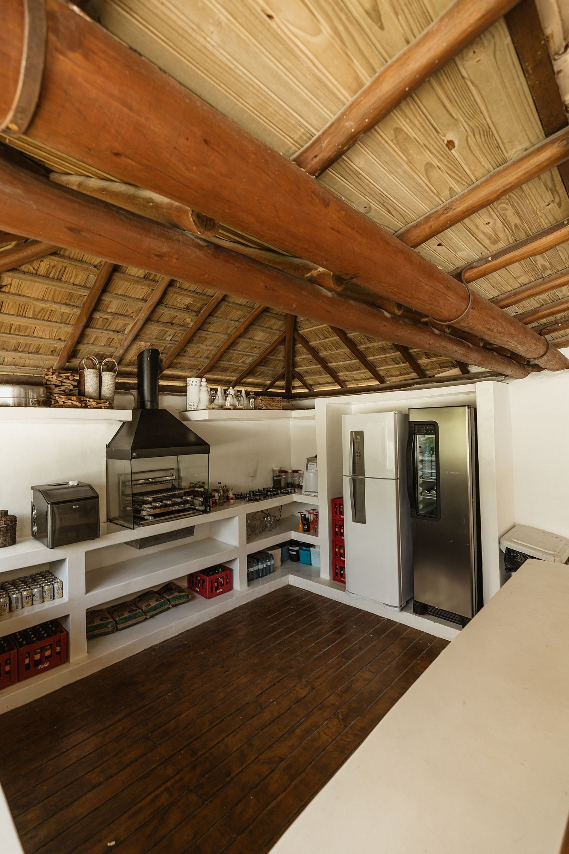 A área gourmet é um verdadeiro paraíso culinário, equipada com churrasqueira, forno de pizza a lenha e um bar externo completo, incluindo geladeira, cervejeira e máquina de gelo. Todos os utensílios necessários estão à sua disposição para criar refeições inesquecíveis.